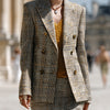 ElevenOra Chic Vintage Contrast Check Peak Lapel Double-breasted Slim-fit Blazer