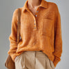 The ElevenOra Chic Vintage Pumpkin Orange Polo Collar Half-Placket Pocket Fuzzy Slouchy Knit Sweater is a must-have for those looking to blend classic vintage vibes with modern comfort and functionality. Its rich color, slouchy fit, and stylish details make it a versatile addition to any wardrobe.