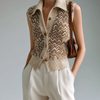 ElevenOra Fashion Casual Beige Lapel Herringbone Jacquard Button-Up Loose Sleeveless Cardigan Knit Vest