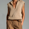 ElevenOra Fashion Casual Camel Lapel Deep V-neck Loose Sleeveless Knit Vest