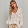 ElevenOra Fashion Casual White Jacquard V-Neck Long-Sleeve Loose Soft Knit Sweater Top