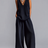 Key Design: The set includes a V-neck sleeveless vest and wide-leg pants, offering a balanced silhouette that is both chic and comfortable.