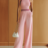ElevenOra Stylish Elegant Pink Colorblock Mock Neck Sleeveless Slim-Fit Wide-Leg Ribbed Knit Jumpsuit