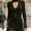 ElevenOra Stylish Glitter Turtleneck Keyhole Cutout Belted Long Sleeve Ruffled Hem Knit Mini Dress