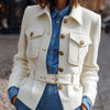 ElevenOra Vintage Casual Wool Blend Lapel Collar Metal Button Single-Breasted Belted Jacket