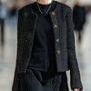 ElevenOra Vintage Elegant Black Tweed Round Neck Metal Button Single-Breasted Cropped Jacket