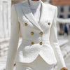 ElevenOra Vintage Elegant Cream White Tweed Peaked Lapel Double-Breasted Tailored Blazer