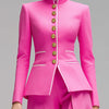 ElevenOra Vintage Elegant Stand Collar Single-Breasted Contrast Trim Tailored Waist Blazer