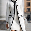 ElevenOra Vintage Elegant Tweed Round Neck Single-Breasted Contrast Trim Tailored Mid-Length Coat