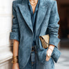 ElevenOra Vintage Office Blue Faux Suede Peak Lapel Single-Breasted Tailored Blazer
